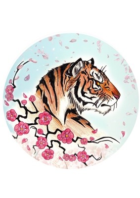 Тарелка настенная 20см Тигры-6 /сакура/